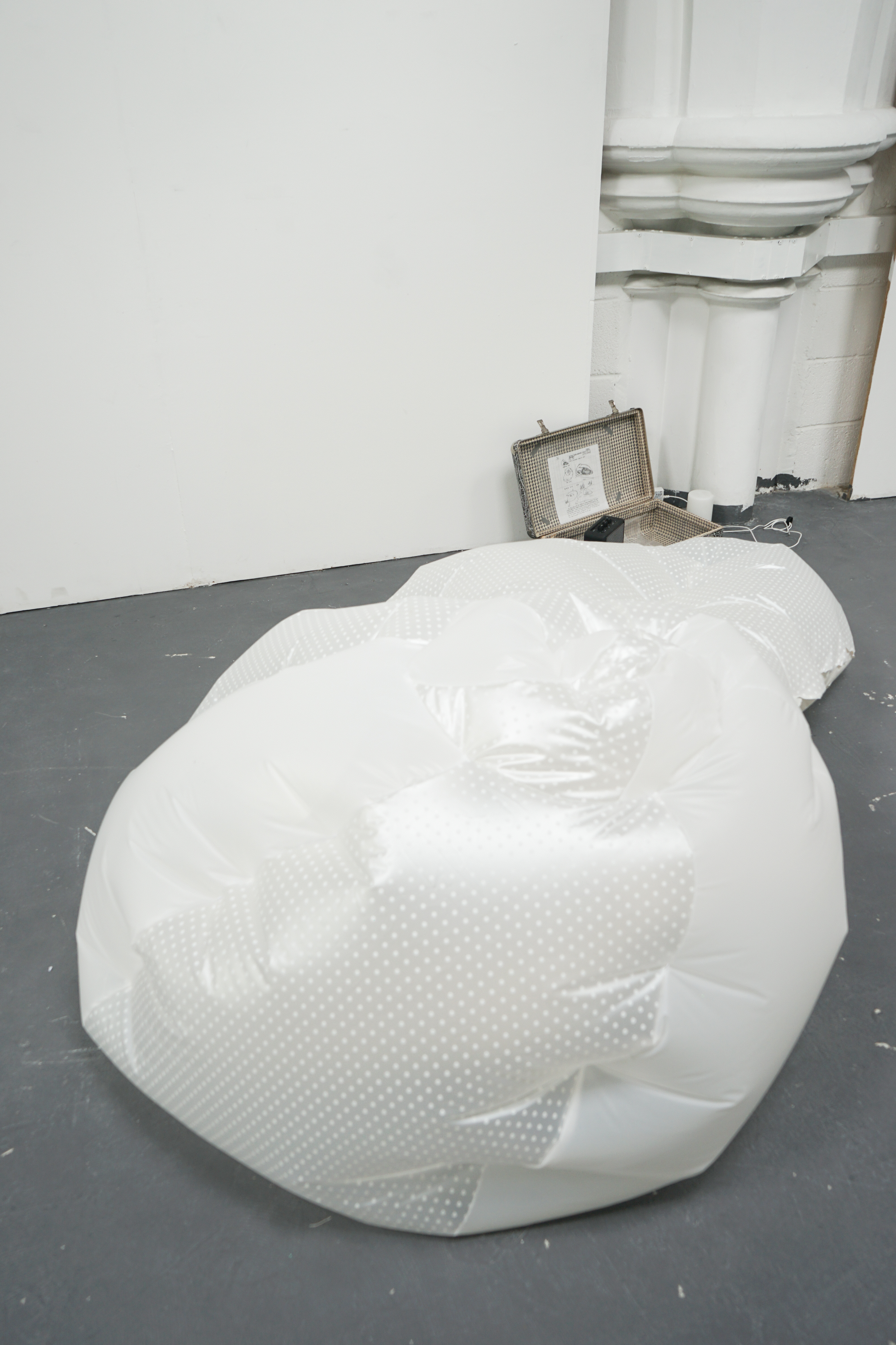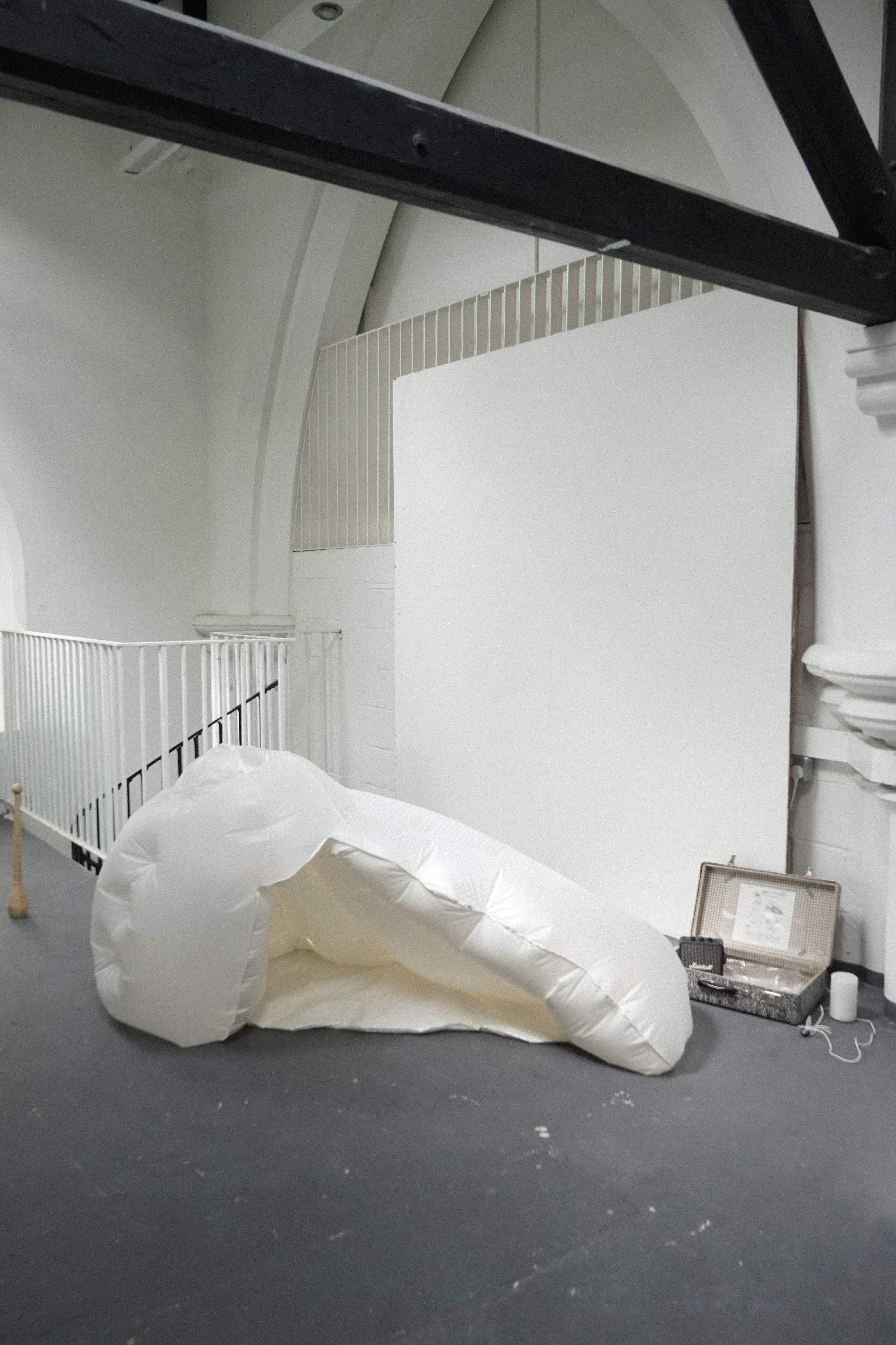 PVC, blower, Marshall Bluetooth stereo, suitcase, manuscript