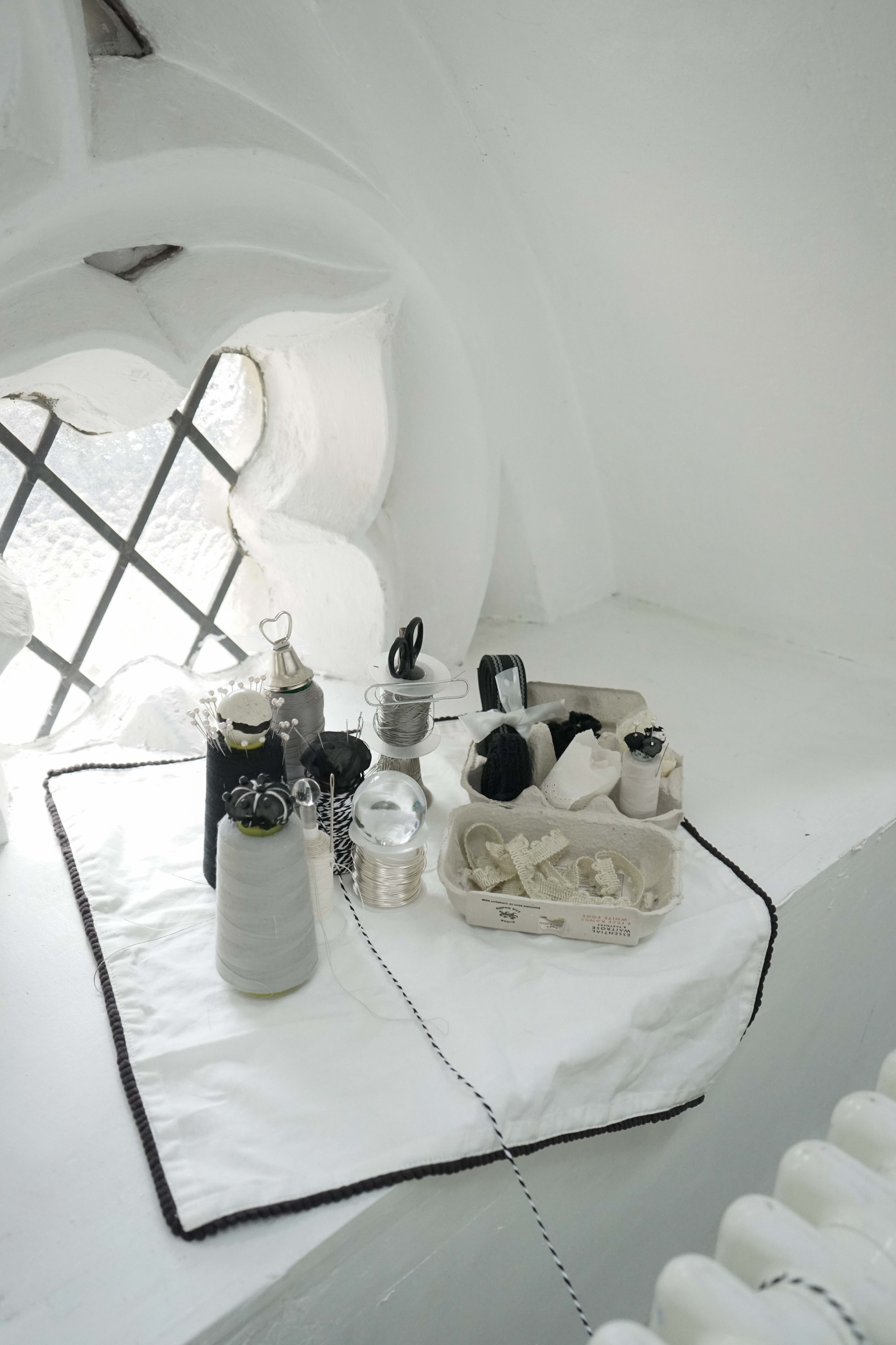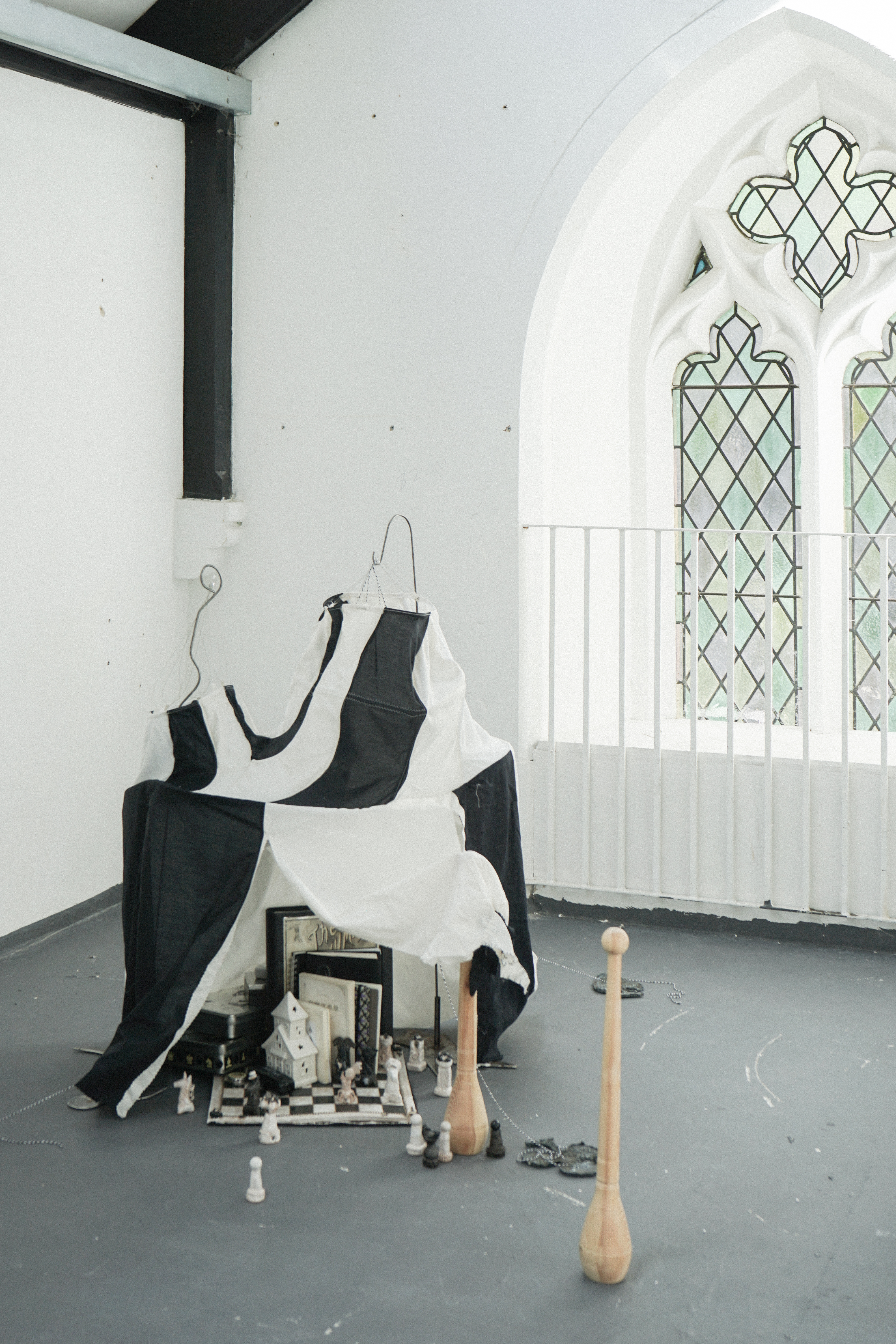陶瓷棋子、手稿、书籍、棉布帐篷、金属支架、棉绳、口琴、拨片、塑料盒