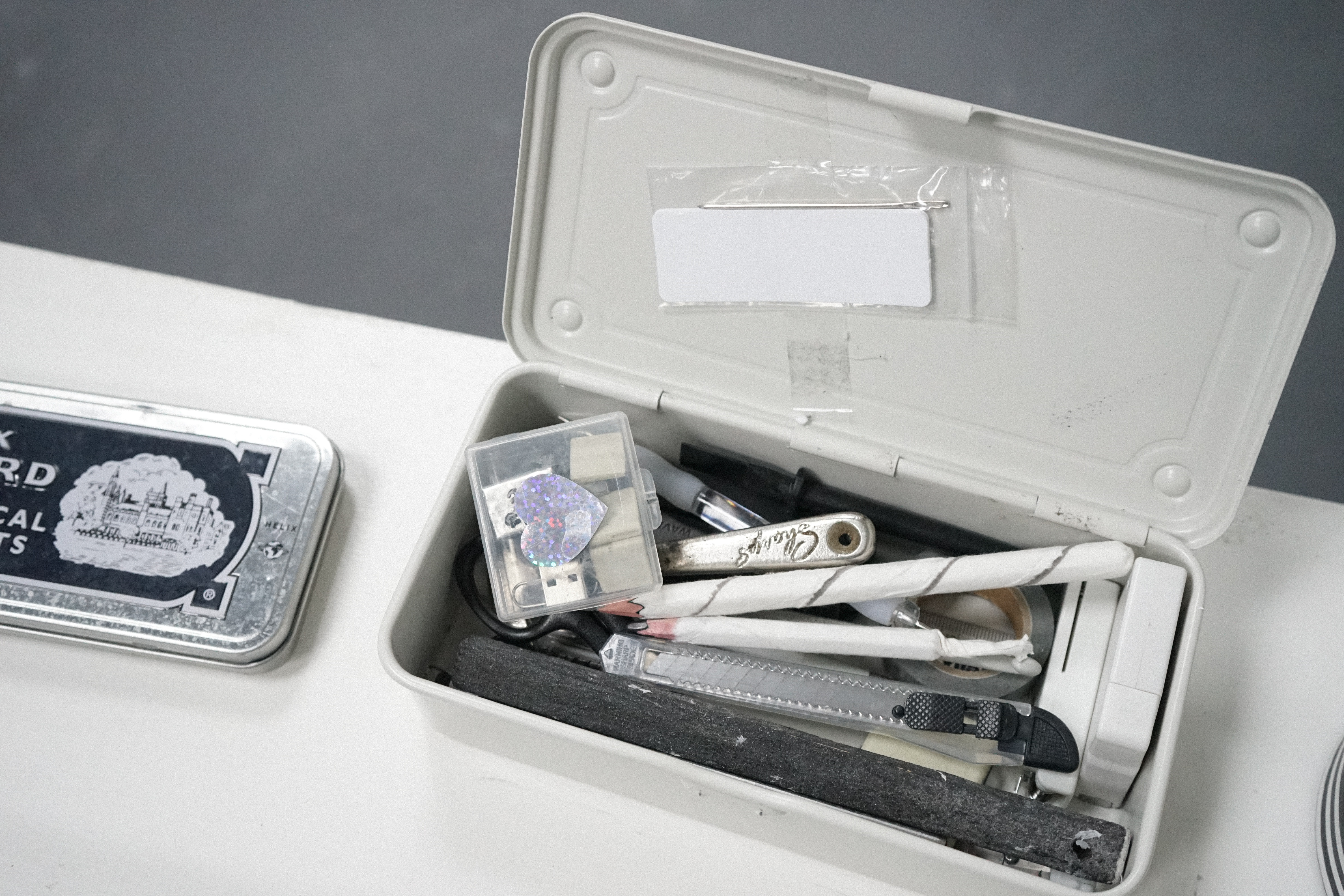 捡拾椅子、门、水瓶、棉花、铁盒、陶瓷、蜡烛、打火机、纸张、木棍、工具、胶带、钉 子、足袋鞋、剪刀、手稿、包装盒、海绵擦